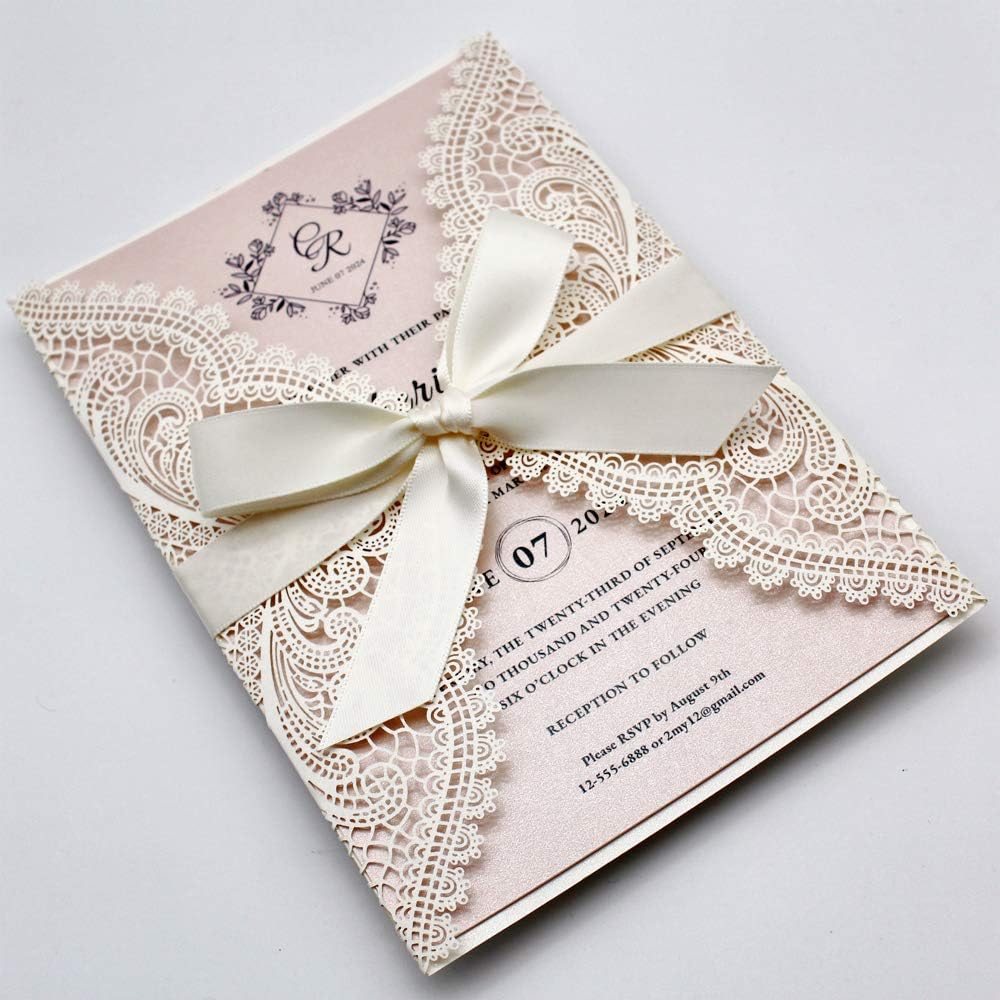 Blush Pink Lace Wedding Invitations Formal Wedding Invitation