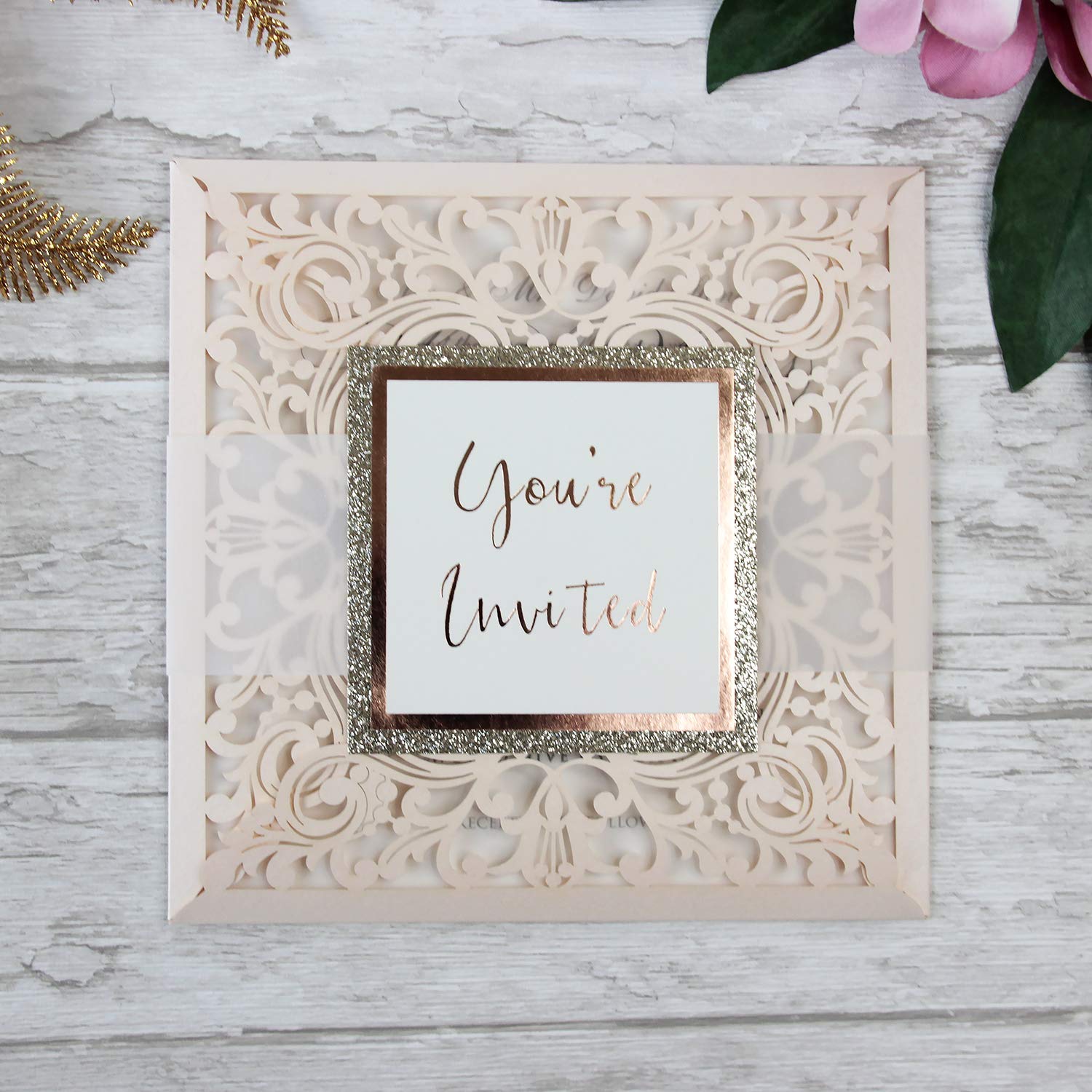 Cordially Inviting Rose Gold Glitter Bottom Wedding Invitations