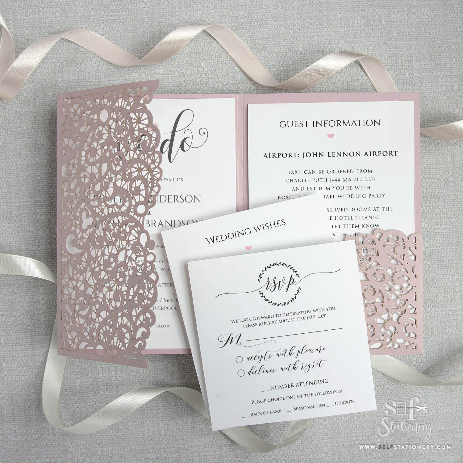Pre Printed Sample Diy Set Laser Cut Misty Rose Blush Wedding