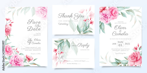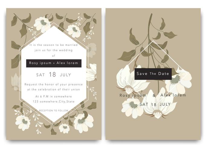 Elegant Wedding Invitation Card Template Set Of Beautiful Flowers