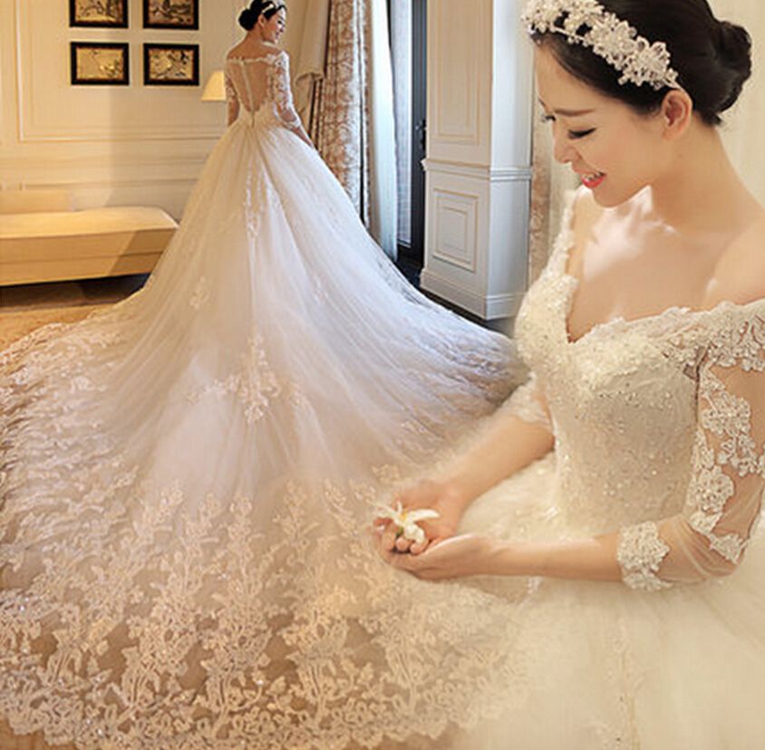 Discount Luxury Wedding Dresses Long Sleeves Lace Bridal Gowns