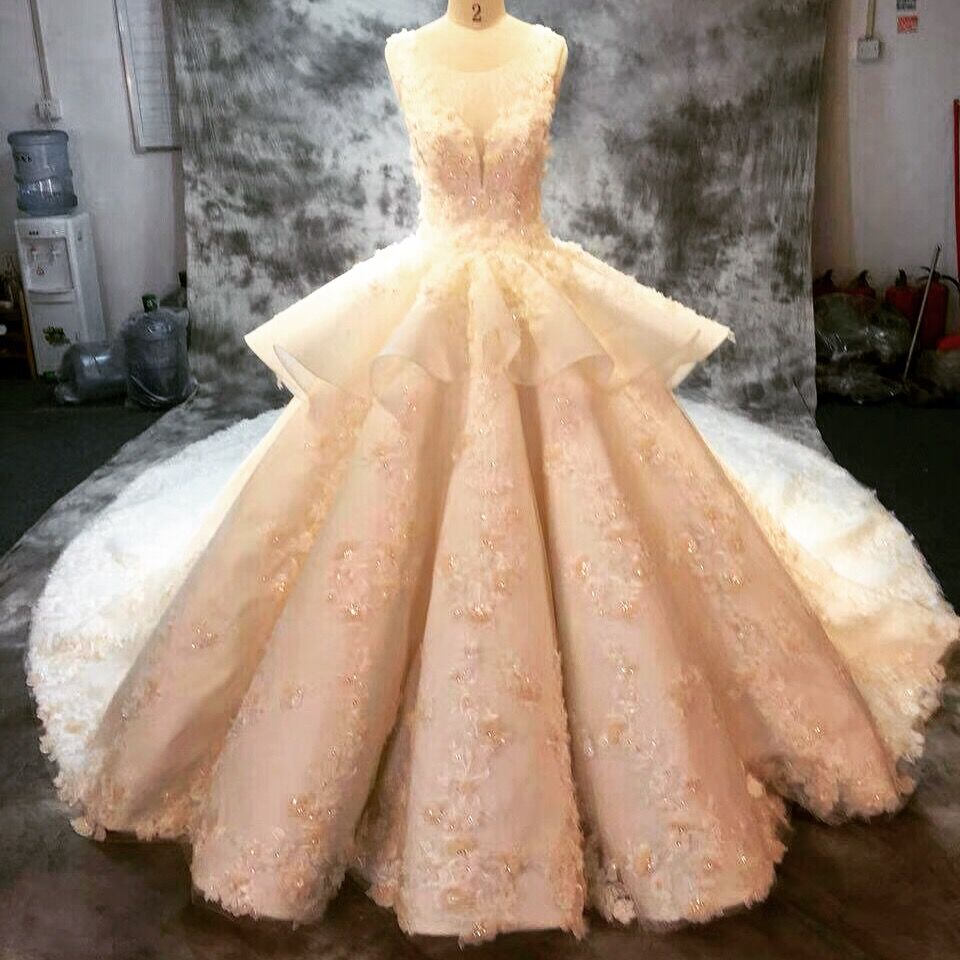Luxury Gorgeous Champagne Wedding Dresses 2020 Ball Gown