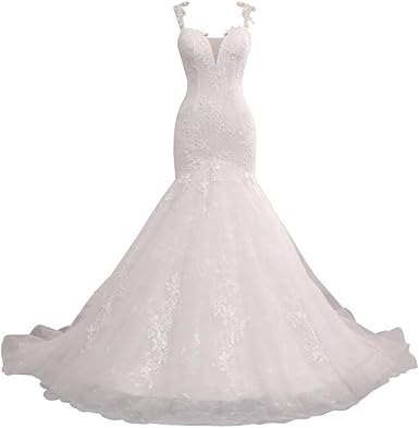 Amazon Com Mermaid Wedding Dresses Lace White Long Bridal Dress