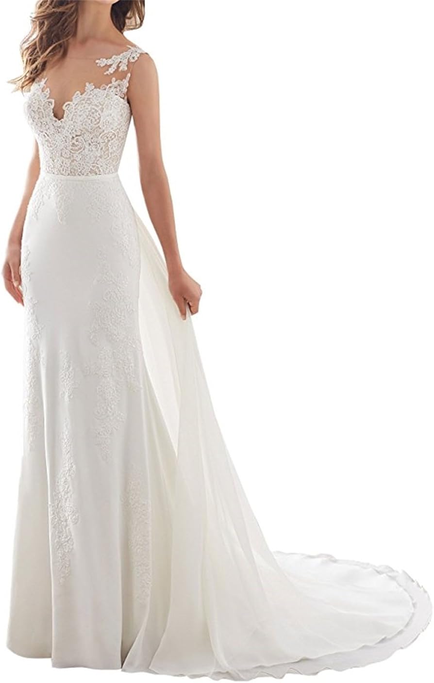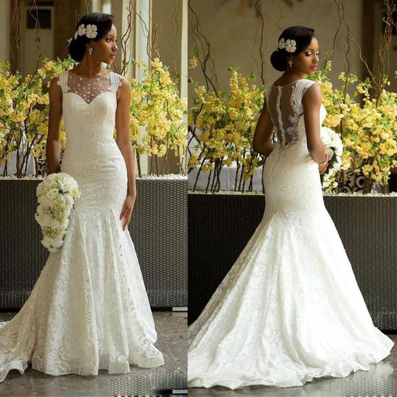 Lace Wedding Dresses Mermaid Bridal Gown Sheer Back Appliqued