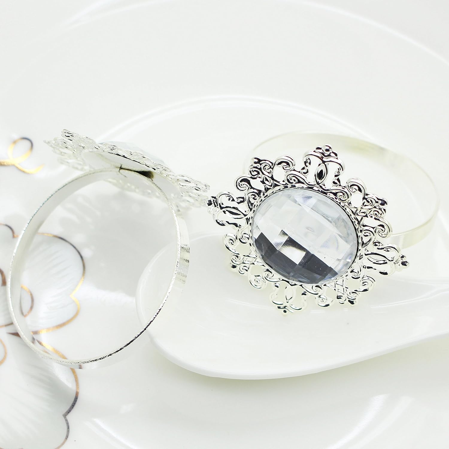 White Resin Rose Silver Napkin Rings Napkin Holder Wedding Napkins